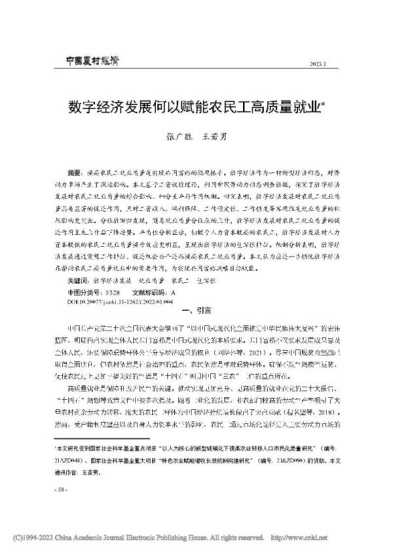 商学院张广胜教授与博士研究生王若男合作论文《数字经济发展何以赋能农民工高质量就业》在《中国农村经济》2023年第1期发表。